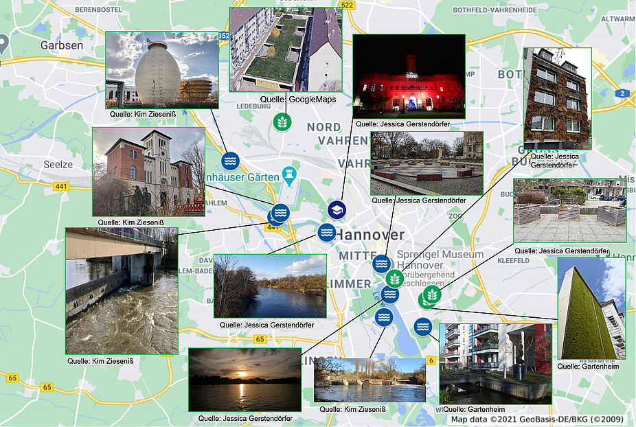 Das Institut für Siedlungswasserwirtschaft und Abfalltechnik der Leibniz Universität Hannover hat anläßlich das Weltwassertags 2021 ungeführte Fahrradtouren ausgearbeitet, die die Möglichkeit bieten sollen, sich unter anderem über die Thematik der Blau-Grünen Infrastruktur (BGI) in urbanen Gebieten zu informieren und Ihren Blick für "Wasser in der Stadt" weiten.